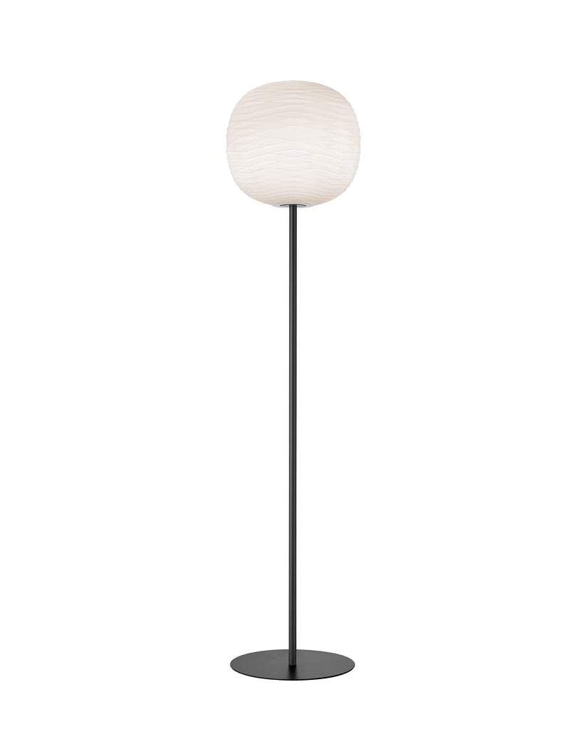 Eine elegante Lichtkugel auf einem langem Stab, wie eine fließende Vibration auf Glas - das ist die 187cm hohe Foscarini Gem Stehleuchte entworfen von Ludovica + Roberto Palomba. Sie ist die logische Erweiterung der erfolgreichen Gem Serie des italienischen Herstellers, dessen Produktpalette nun auch um verschiedene Finishes erweitert wurde. Eine leuchtende Kugel, die auf dem Metallfuß aus satiniertem Metall mit verschiedenen Finishes ruht, gar im Raum zu schweben scheint.