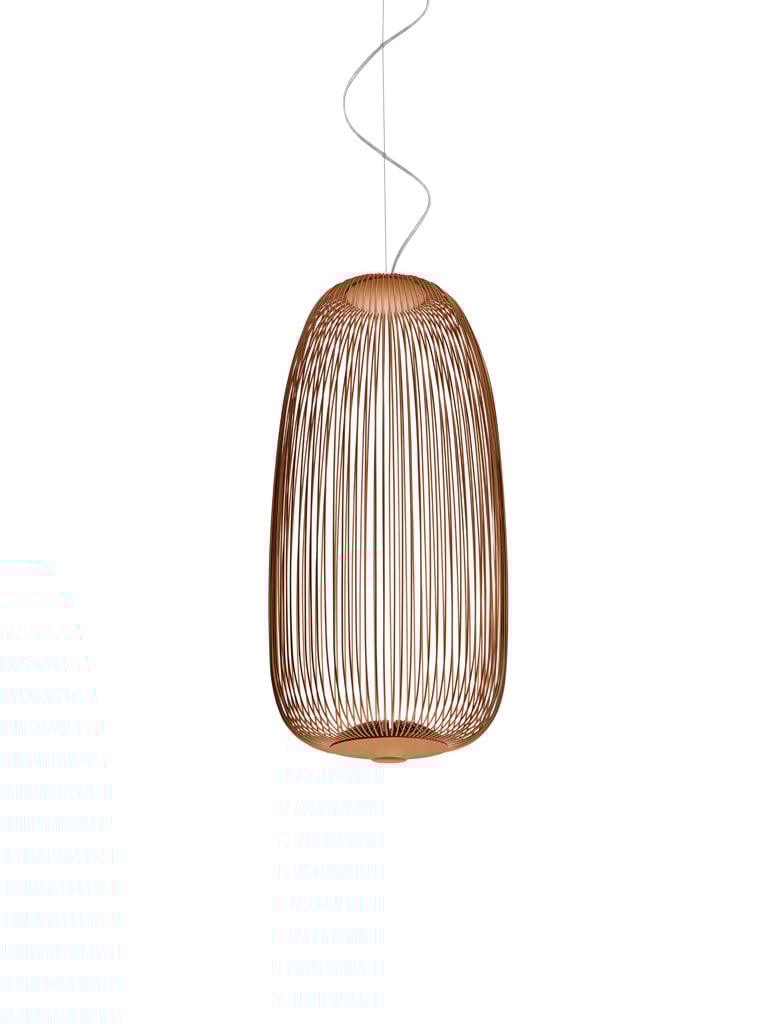 Die faszinierende Foscarini Spokes 1 MyLight Pendelleuchte erhielt Ihren Namen in Anlehnung an die Speichen eines Rades und erinnert in ihrer Form an Volieren und antike orientalische Laternen. Entworfen wurde die Spokes vom Designer Garcia Cumini. Durch ihre weiche, sanfte Form wirkt die Foscarini Spokes 1 Pendelleuchte beinahe schwerelos und be- und verzaubert gleichermapen.