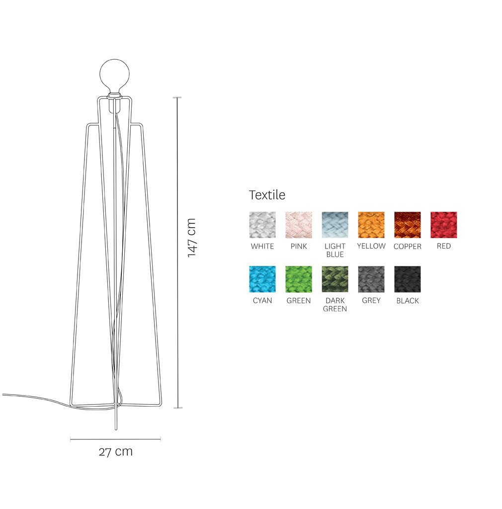 Die Grupa Model Floor M1 Stehleuchte vereint geradliniges Design mit einer persönlichen Farbnote. Die Grupa Model Serie umfasst dabei 3 verschiedene Gestellformen in weiß oder schwarz, wobei Sie hier die M1 Form erhalten. Dazu können Sie zwischen einer Vielzahl von verschiedenen Textilkabelfarben wählen und die Leuchte so perfekt auf das Interieur abstimmen. Selbstverständlich können Sie auch zwei oder mehrere Kabel-Set kaufen, falls Sie diese einmal tauschen möchten - sprechen SIe uns hierfür einfach an!