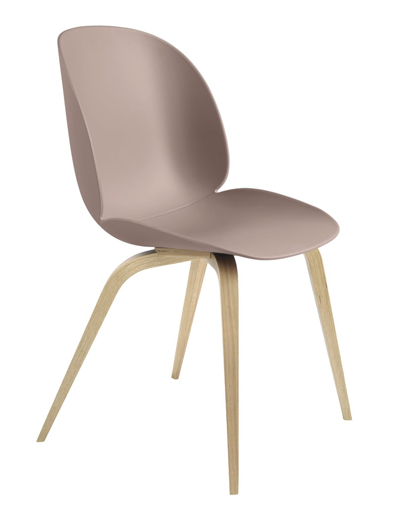 Bei der hier angebotenen Variante handelt es sich um den Gubi Beetle Dining Chair mit Holzbeine aus lackierter Eiche (nicht stapelbar) und einer Sitzschale aus Kunststoff in unterschiedlichen Farben.