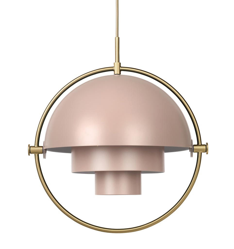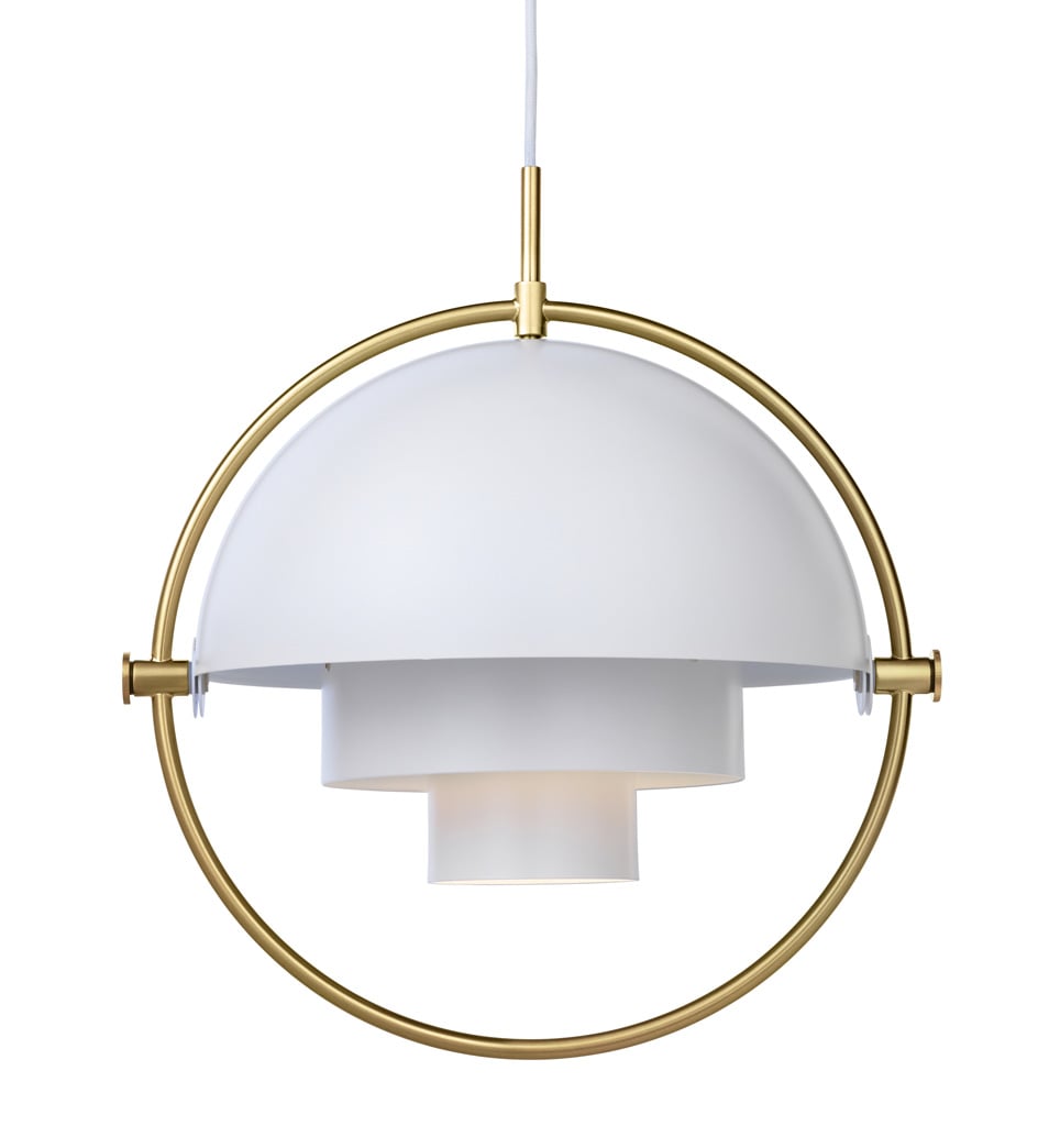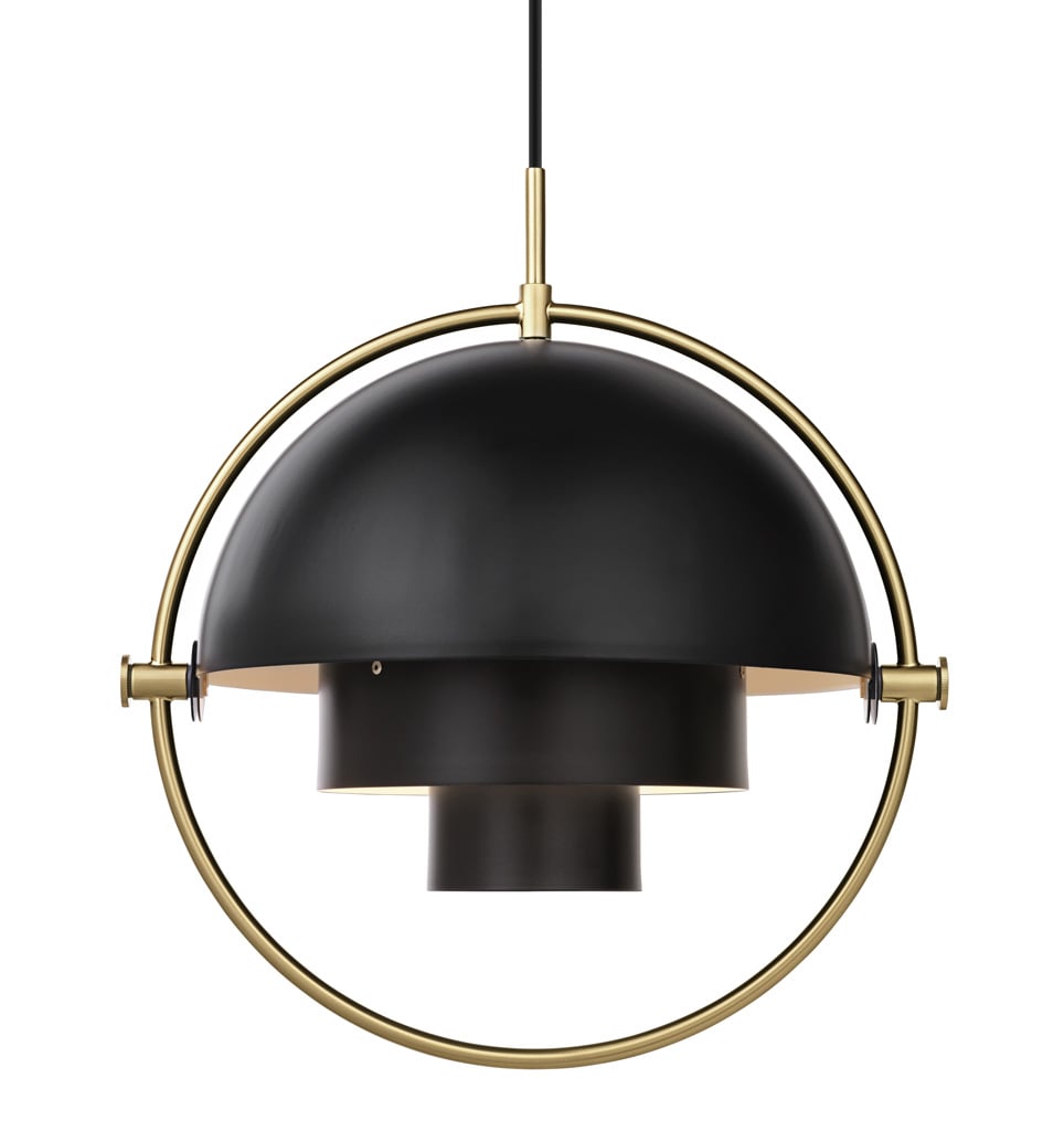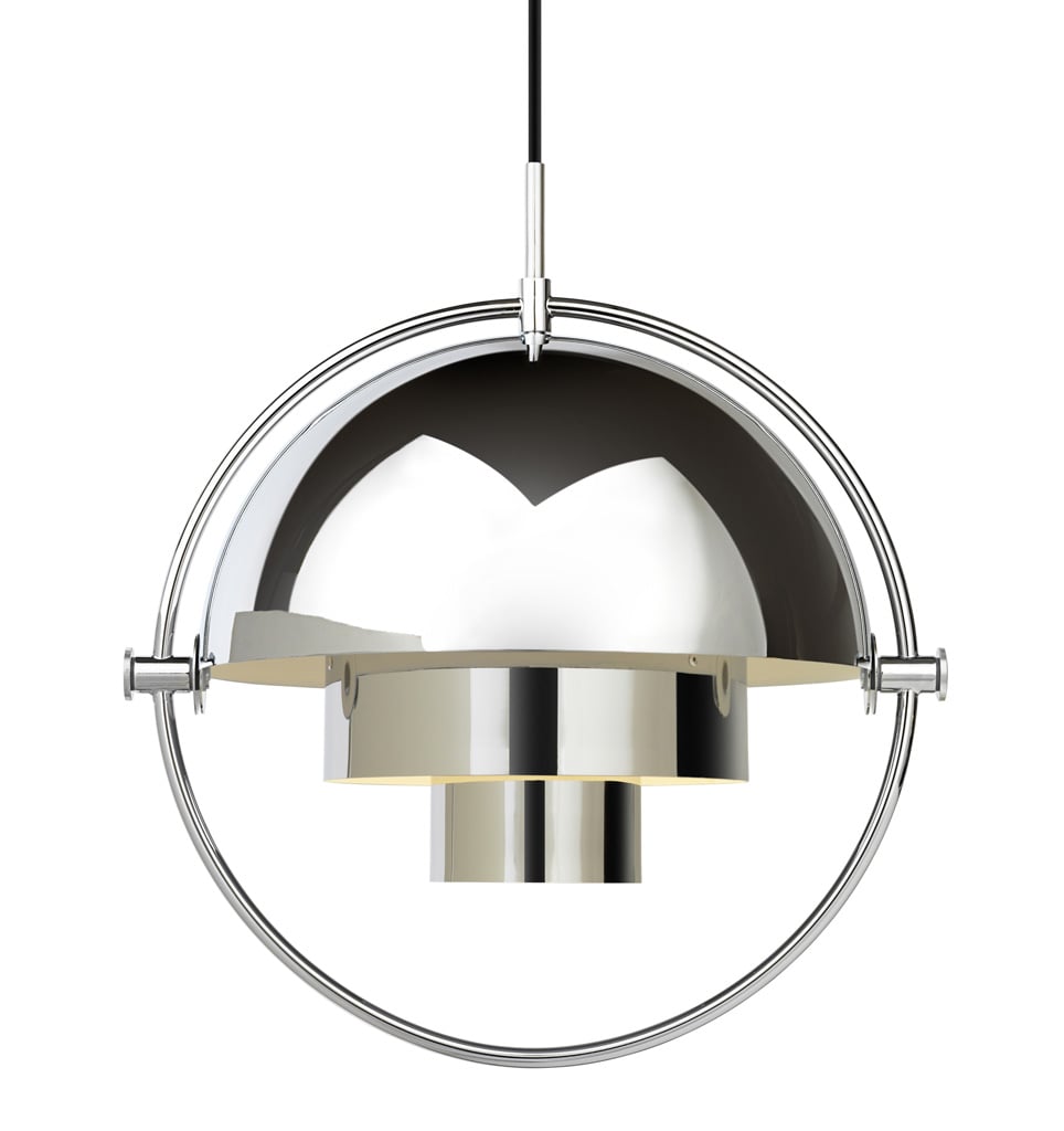 Die verstellbare Gubi Multi-Lite Pendelleuchte ist ein außergewöhnliches Lichtobjekt, das es zuvor so noch nicht gegeben hat. Der Designer Louis Weisdorf kombinierte hier im Jahre 1972 drei geometrische Grundformen miteinander zu einer ganz besonderen Designleuchte. So besteht die Multi-Lite aus zwei feststehenden Zylindern, die von einem Kreis und einer zweigeteilten Halbkugel umgeben werden. Die beiden Hälften der Halbkugel sind frei beweglich und laden so zum Spielen und Experimentieren mit Form und Licht ein.