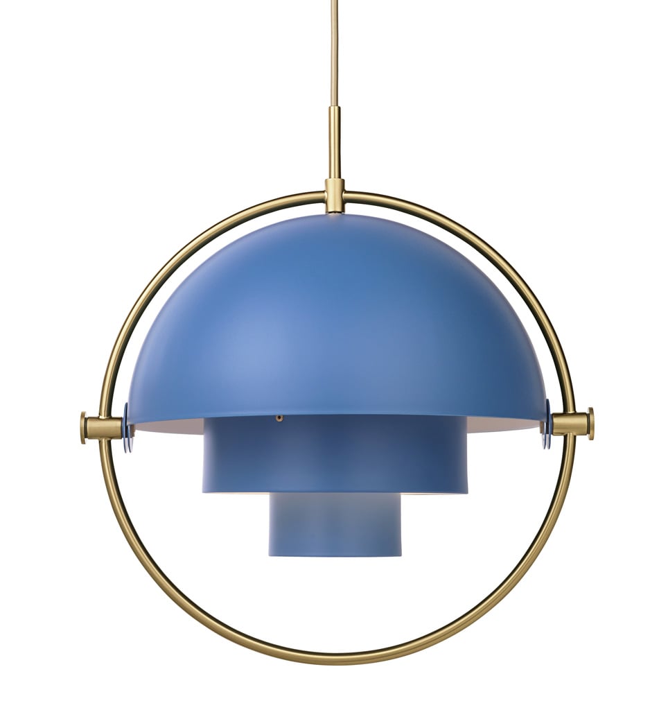 Die Gubi Multi-Lite Pendelleuchte ist wahlweise mit einem Ring aus kühlem Chrom oder in einer wärmeren Messingvariante lieferbar. Die beiden ausrichtbaren Schirmteile und die inneren Zylinder sind in diversen Farben erhältlich, jedoch auf der Innenseite immer weiß. Besonders elegant und wertig wirkt diese einzigartige Multi-Lite-Designleuchte ganz in Chrom oder ganz in Messing.