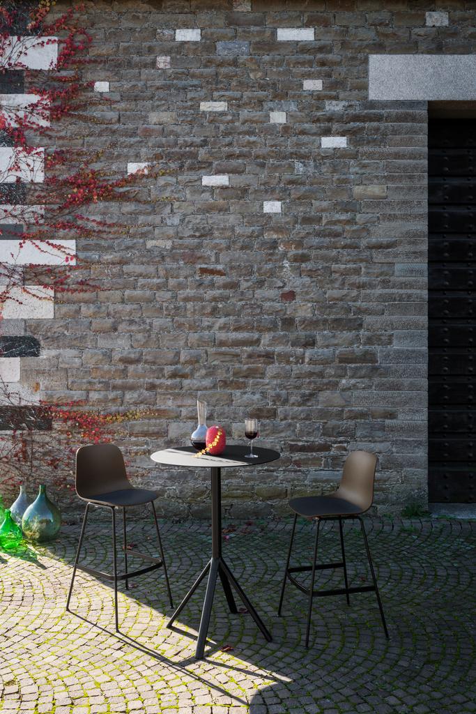 Trotzt Wind, Wetter und Unebenheiten: der Lapalma Fork Outdoor Stehtisch von Designer Tomoya Tabuchi. Die filigrane Konstruktion des Stehtisch trügt: dank seines aufgefächerten Gestells sorgt er auf jedem Untergrund für Stabilität und büßt dennoch an Eleganz dabei Nichts ein.