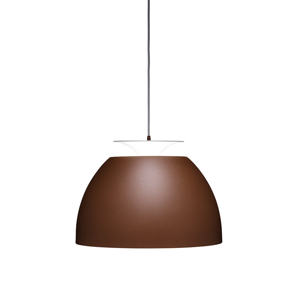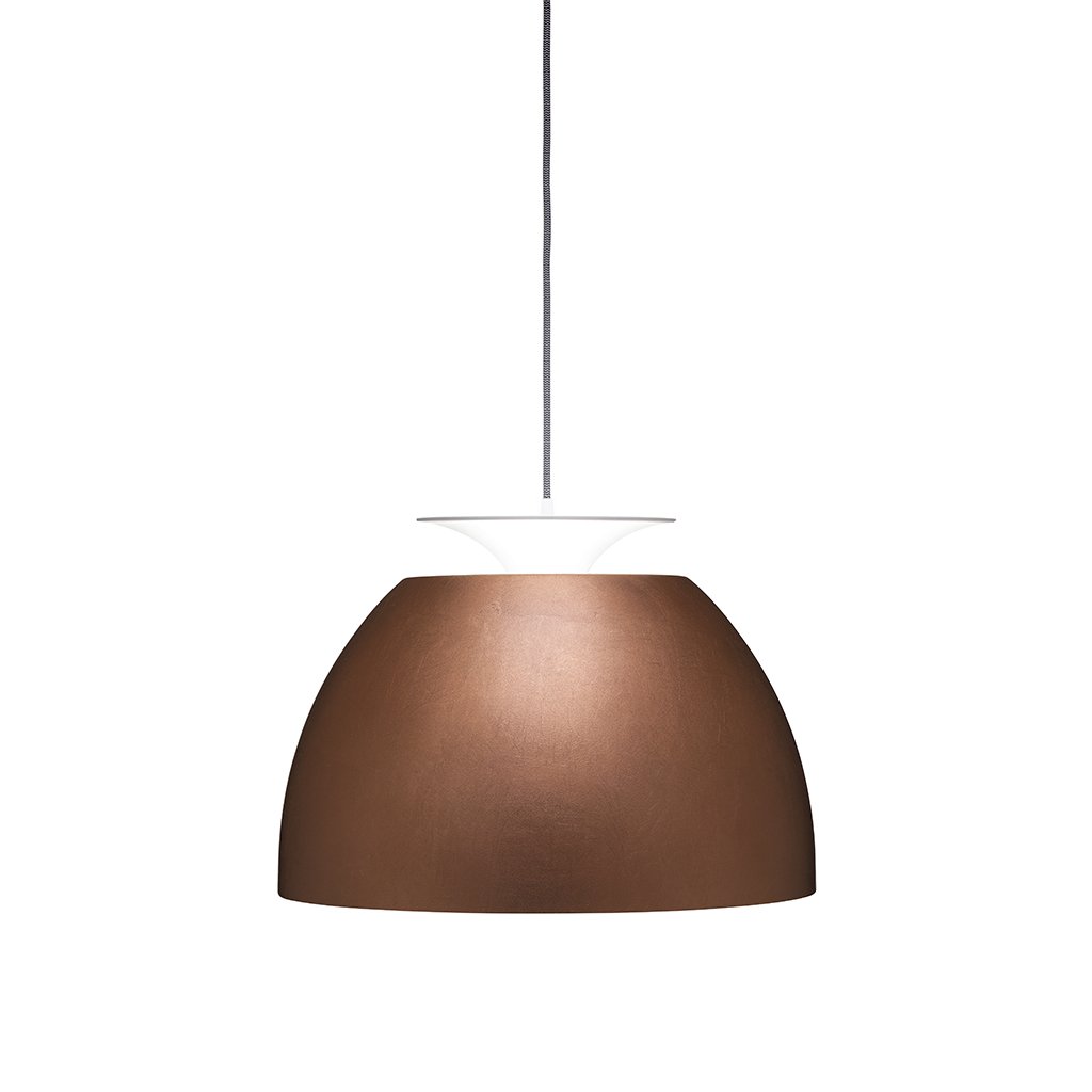 Durch Verschieben des Leuchtenschirms nach oben oder unten ist die Lichtintensität der Lumini Big Bossa Pendelleuchte von direkt zu indirekt stufenlos steuern. So wird aus einer Wohn- oder Esszimmerleuchte in Windeseile ein raumfüllendes Stimmungslicht. Eine Abdeckung im unteren Teil des Schirms bietet einen effizienten Blendschutz. Die Lumini Big Bossa Pendelleuchte besteht aus Aluminium und ist in verschiedenen eleganten Farben erhältlich. Corten ist ein dunkler Braunton der an verrosteten Baustahl erinnert, die silberne und kupferne Ausführung sind lackiert. Die Lumini Big Bossa Pendelleuchte ist auf Anfrage auch als Energiesparleuchte mit elektronischem Vorschaltgerät erhältlich.