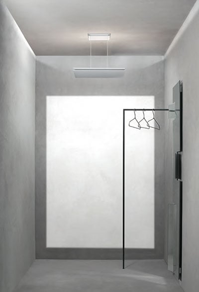 Die flache Lumini Quadratta Pendelleuchte ist eine Arte Hybridversion zwischen Decken- und Hängeleuchte. Das puristische Design fügt sich elegant und unaufdringlich in öffentliche oder private Räumlichkeiten ein und leuchtet diese selbst als indirekte Lichtquelle effizient aus.