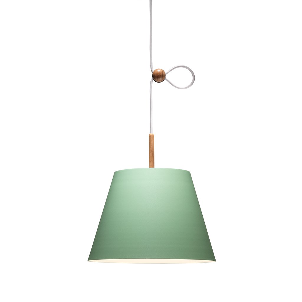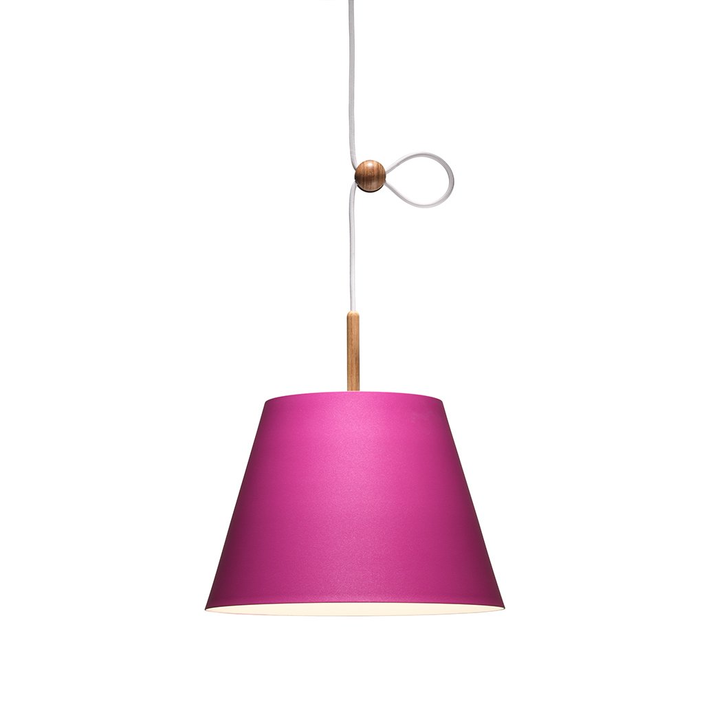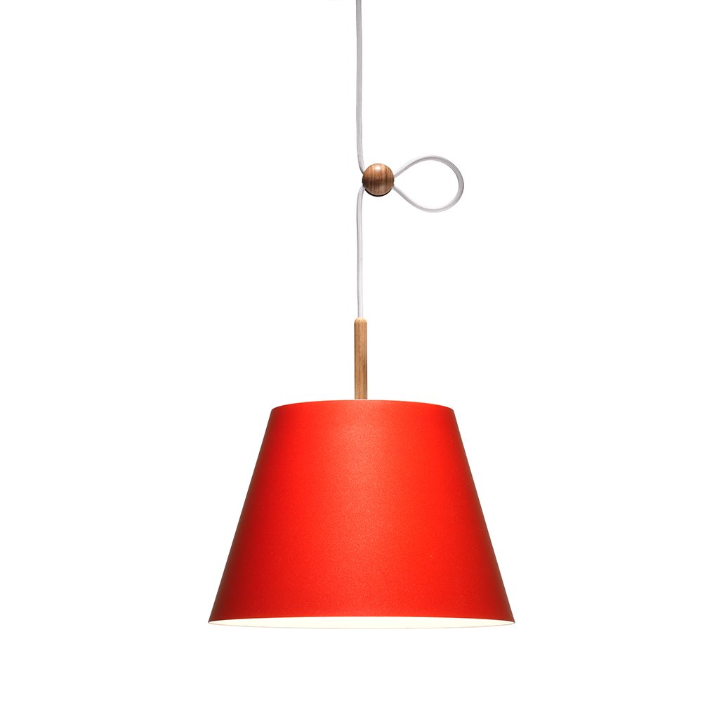 Der Schirm der Lumini Vinte2 Pendelleuchte besteht aus Aluminium in verschiedenen Farben von klassisch bis bunt, der auf der Oberseite mit einem schmalen Holzstab versehen ist. Die Leuchte ist mit einem energieeffizienten, dimmbaren LED-Element versehen, das ein gleichmäßiges, warmweißes (2700° K) abgibt. Der Clou der Lumini Vinte2 Pendelleuchte besteht jedoch in ihrem Verstellmechanismus: Über eine kleine Holzkugel lässt sich die Höhe der Pendelleuchte flexibel an Raumhöhe oder Einrichtungsstil anpassen.