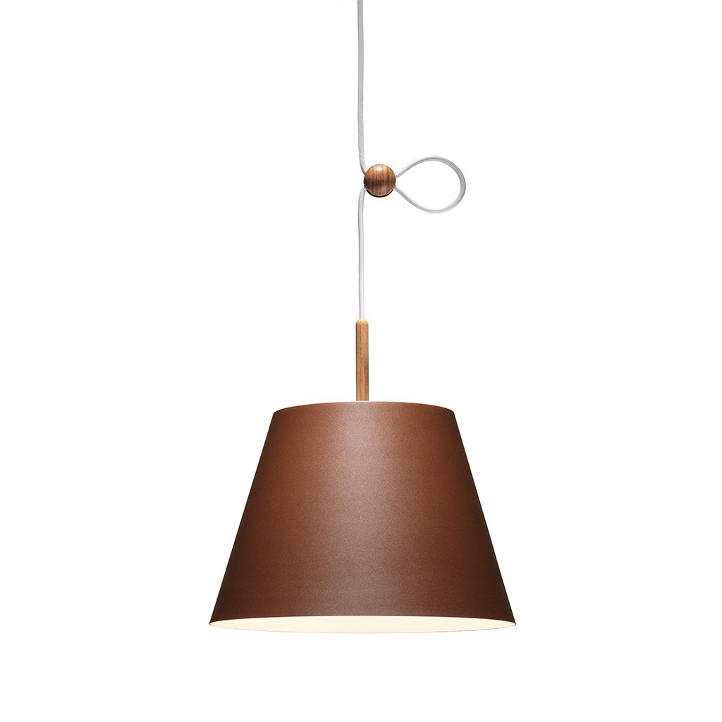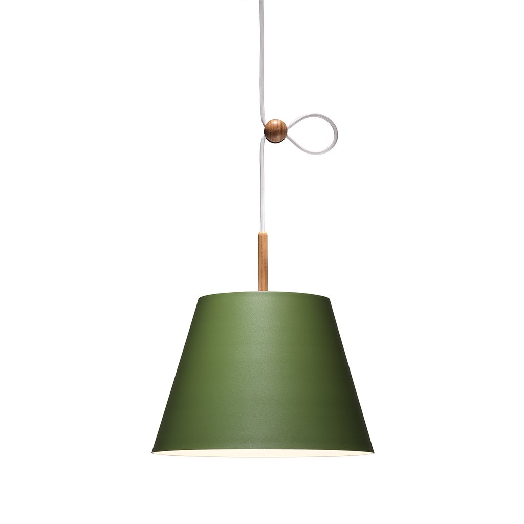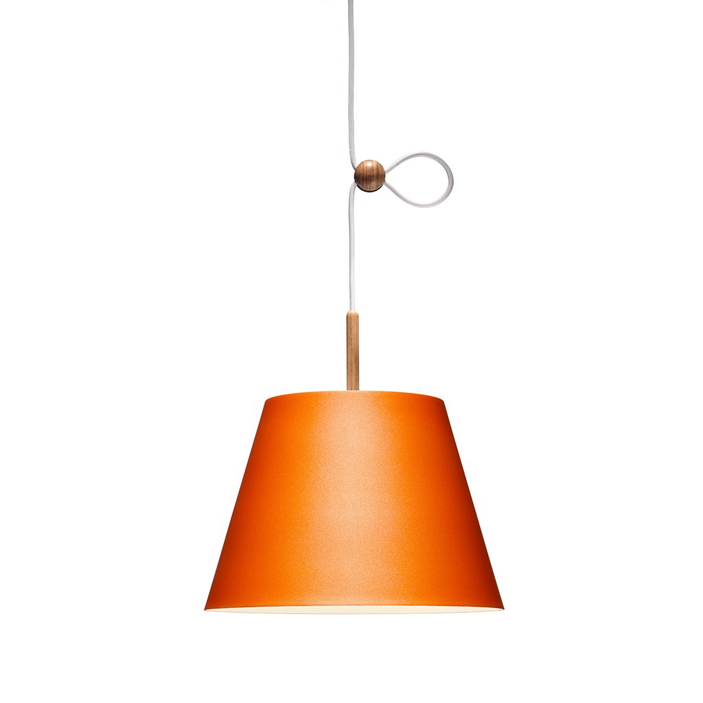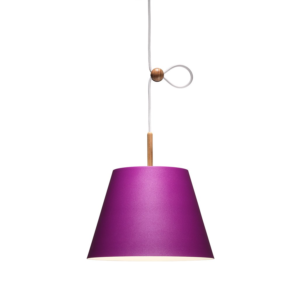 Der Schirm der Lumini Vinte2 Pendelleuchte besteht aus Aluminium in verschiedenen Farben von klassisch bis bunt, der auf der Oberseite mit einem schmalen Holzstab versehen ist. Die Leuchte ist mit einem energieeffizienten, dimmbaren LED-Element versehen, das ein gleichmäßiges, warmweißes (2700° K) abgibt. Der Clou der Lumini Vinte2 Pendelleuchte besteht jedoch in ihrem Verstellmechanismus: Über eine kleine Holzkugel lässt sich die Höhe der Pendelleuchte flexibel an Raumhöhe oder Einrichtungsstil anpassen.