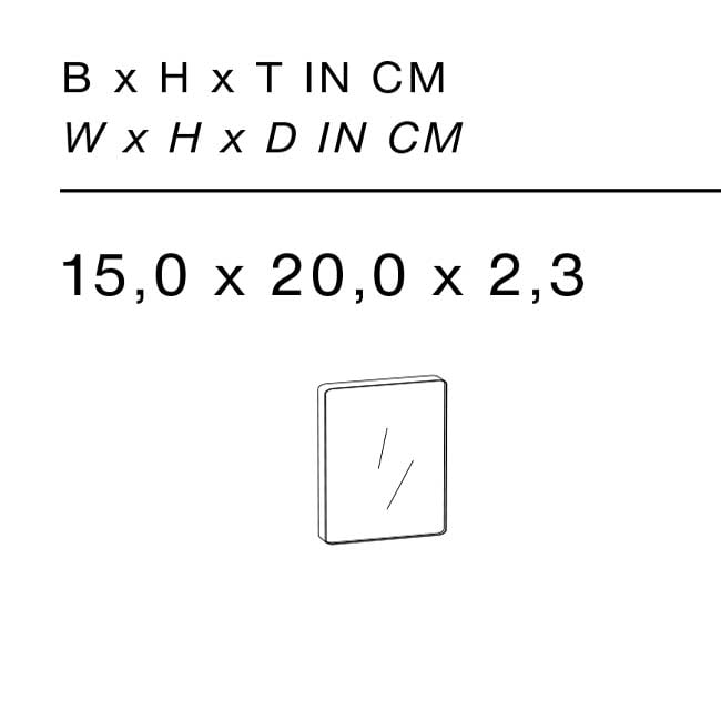 | Maße: | XS: B 15cm, H 20cm, T 2,3cm |