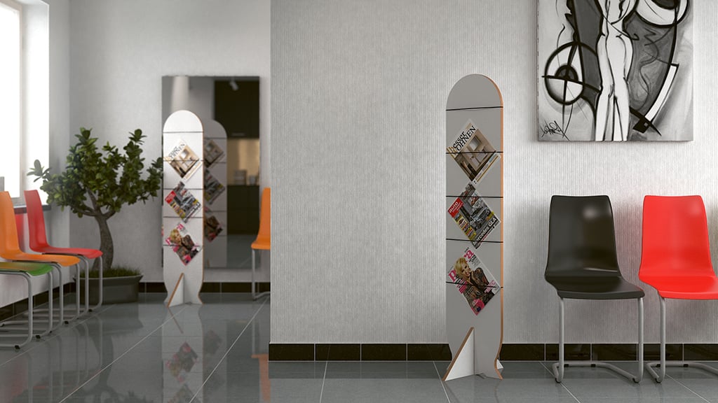 Der dekorative Tojo Magazzi Magazinhalter ist somit ideal einsetzbar für Warteräume oder Empfangshallen. Doch auch im Büro oder in öffentlichen Räumen, als praktischer Informationsstand, macht der platzsparende Zeitungsständer eine gute Figur.